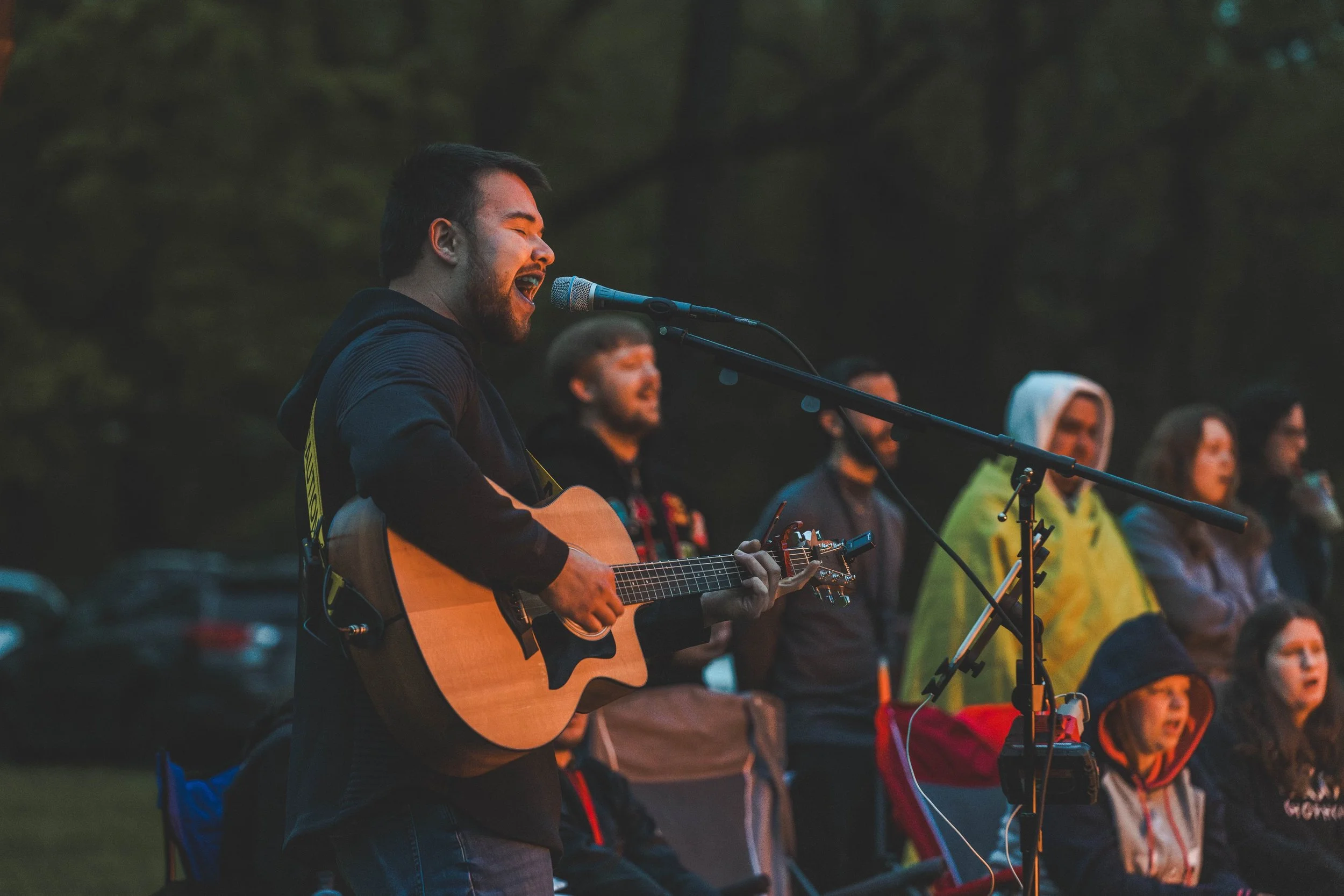Around the fire, voices rise together. Faith by Fire is a one-of-a-kind night of worship, community, and surrender — a safe space to encounter God with others who love Him.